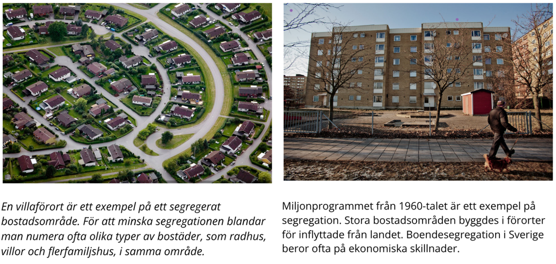 Ibland kan vi se att samhÀllet delas upp i olika grupper, till exempel rika och fattiga omrÄden. Det hÀr kallas segregation och det pÄverkar oss alla. Om du vÀxer upp i ett omrÄde med fÄ resurser, kan det bli svÄrare att lyckas i skolan eller fÄ ett bra jobb. Det kan ocksÄ vara sÄ att fÀrre röstar i valen eller att det finns mer kriminalitet.
